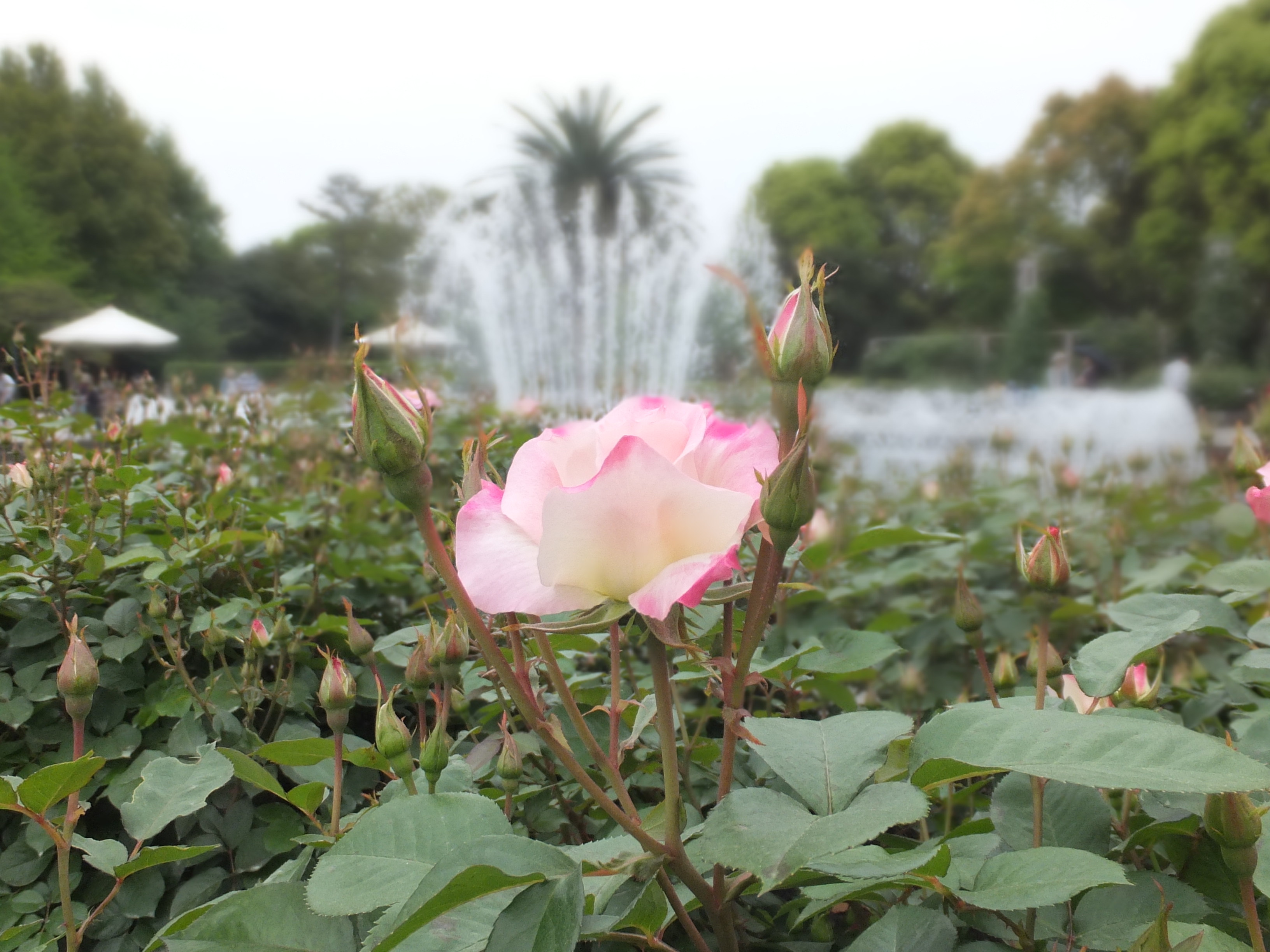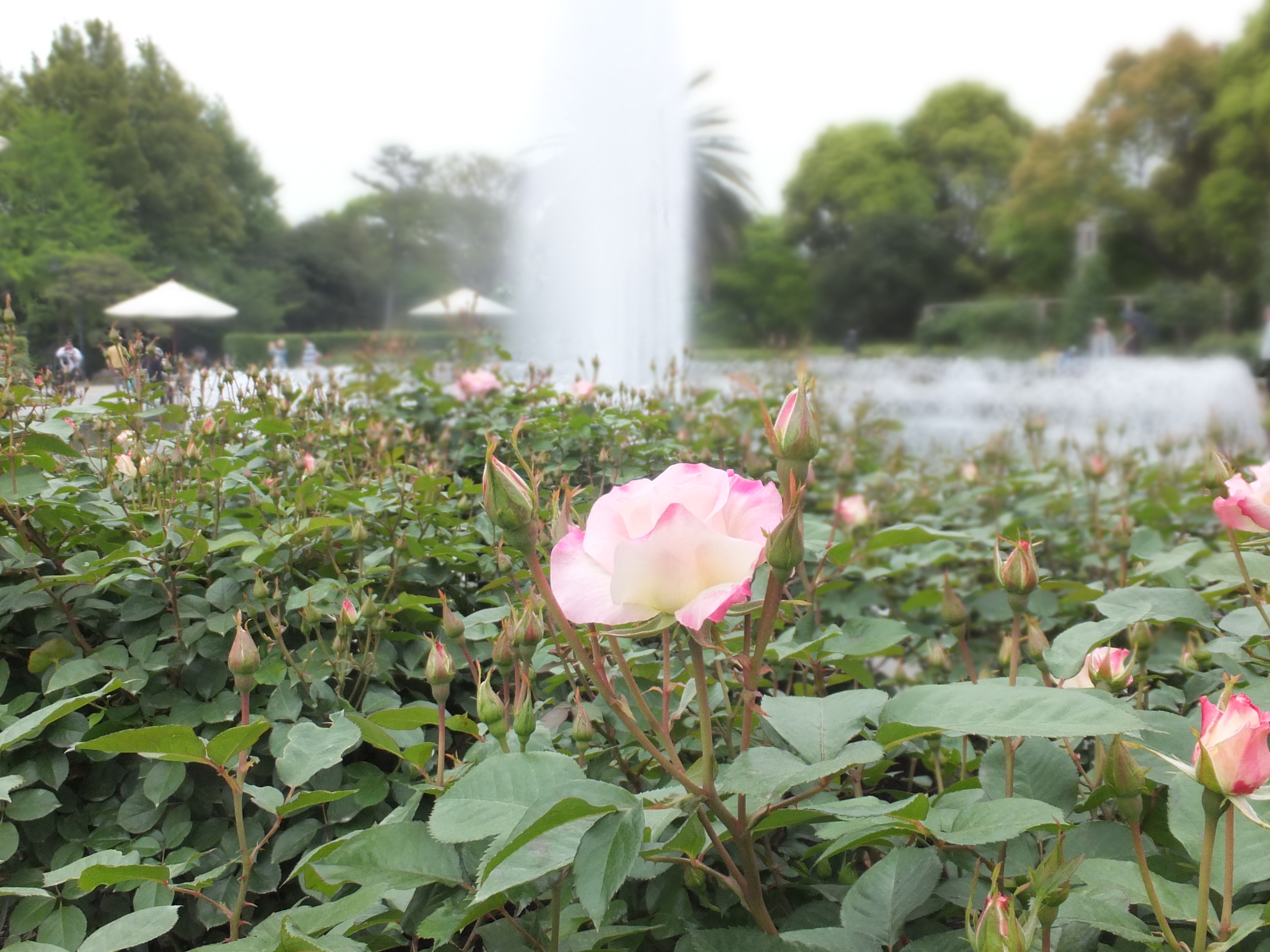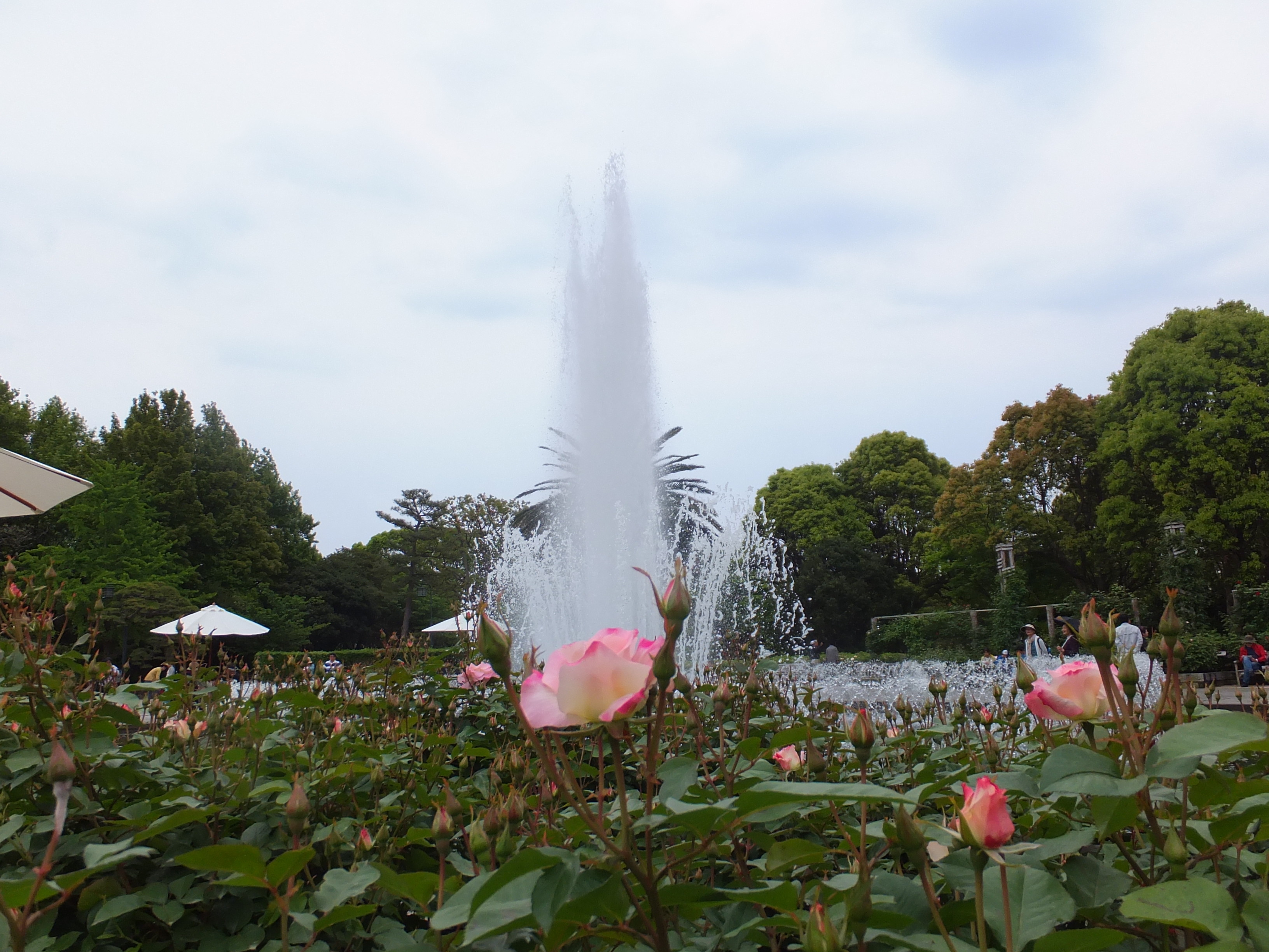 噴水がバックに写る薔薇の写真も、雰囲気があっていい感じ⛲