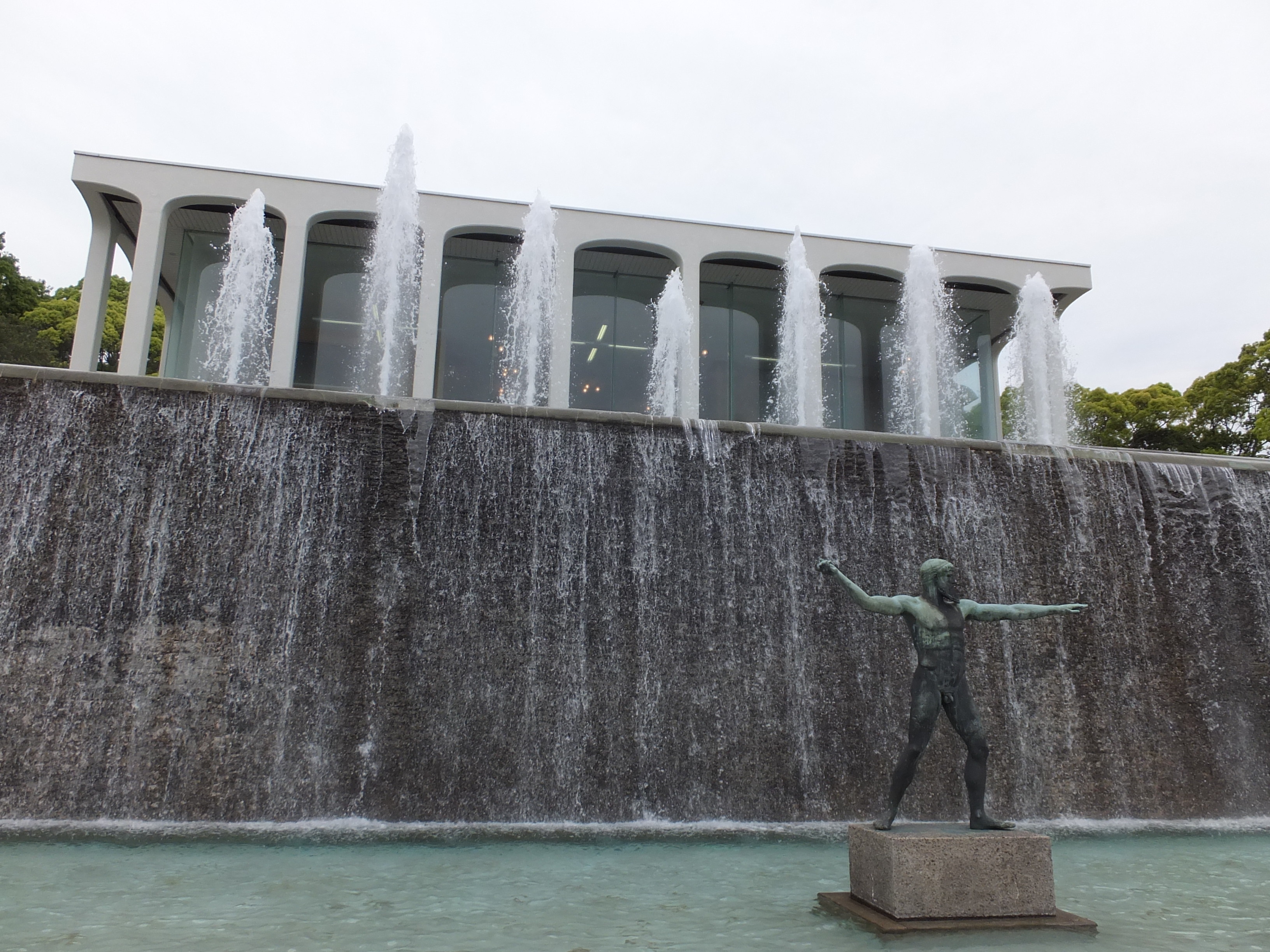 キャナルのリズミカルな小噴水、カスケードの流れ、天高く噴き上がる大噴水、