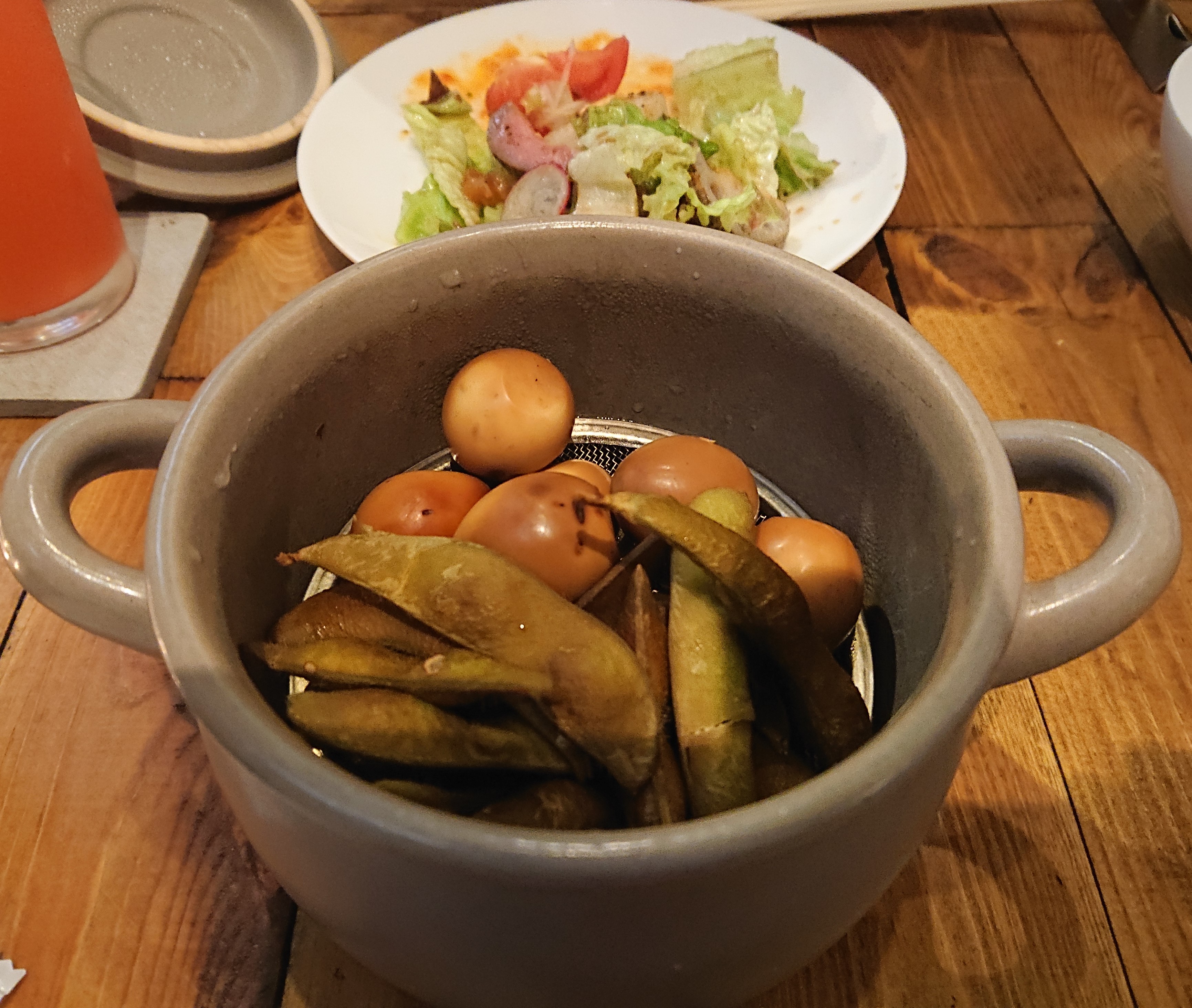 もくもく壺スモーク(うずら玉子と枝豆半分ずつ)
