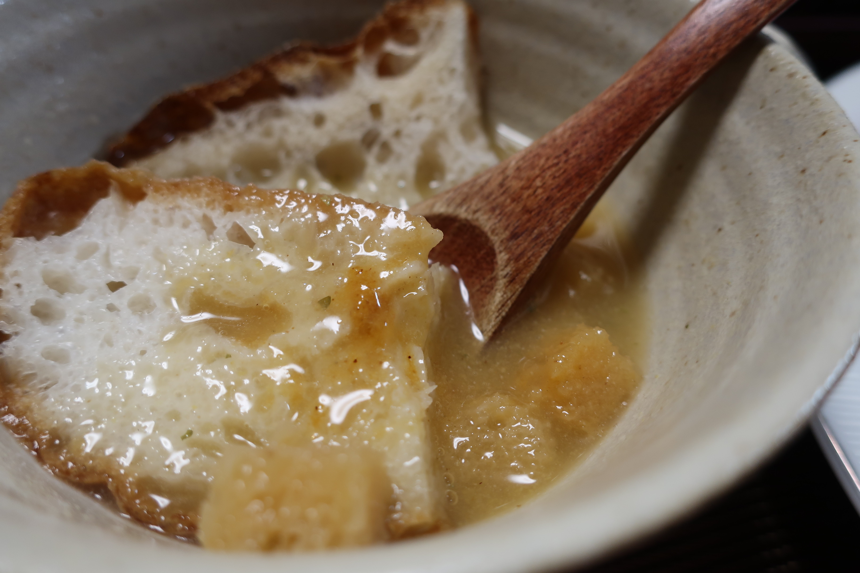 スープというよりも、バケットに付けて食べる玉ねぎソース風。