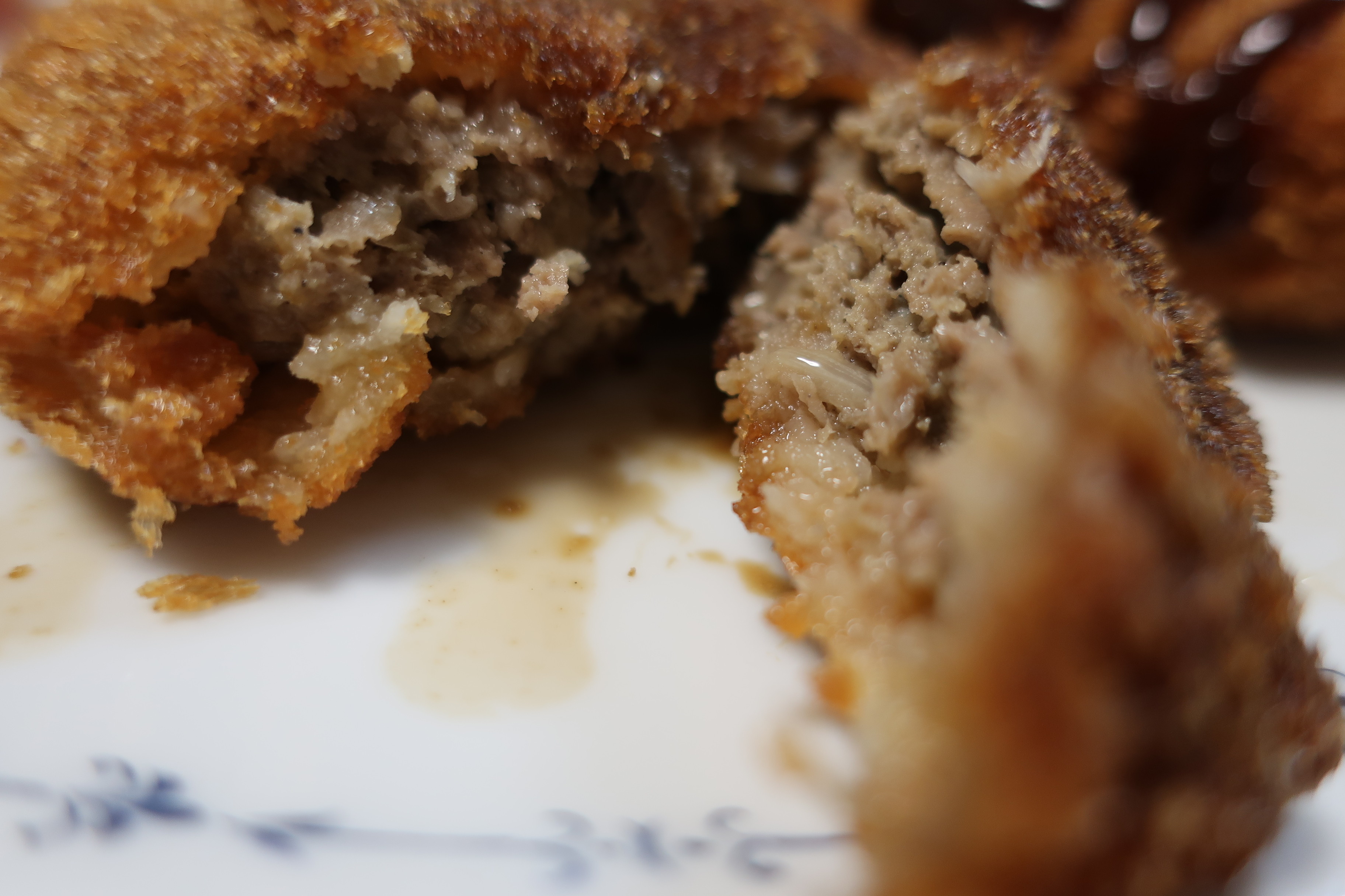 ミンチカツは、衣が若干固くなってしまっていましたが、中身はジューシー。