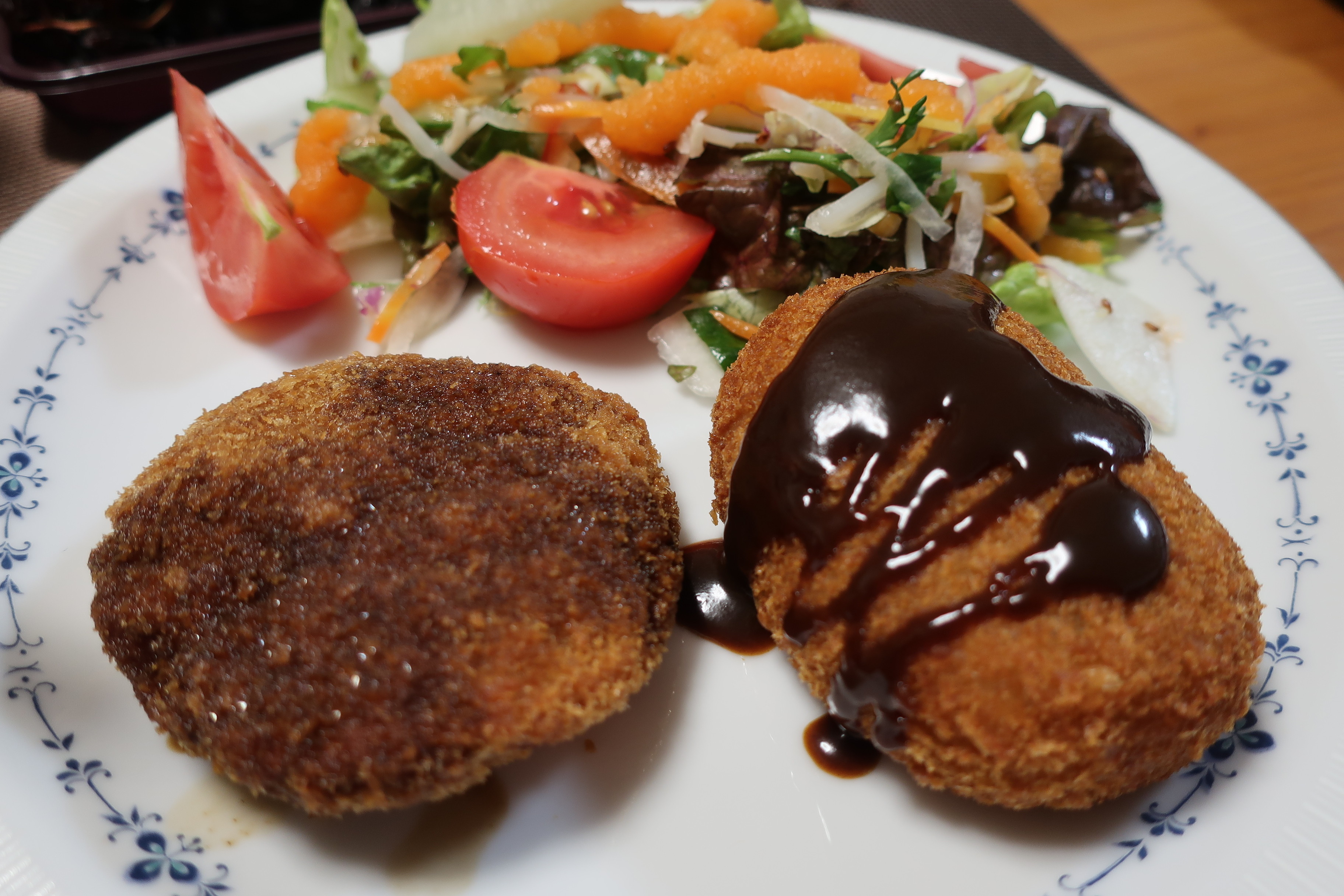 私は、ミンチカツにはウスターソース、コロッケにはデミグラスソースをかけて食べました。