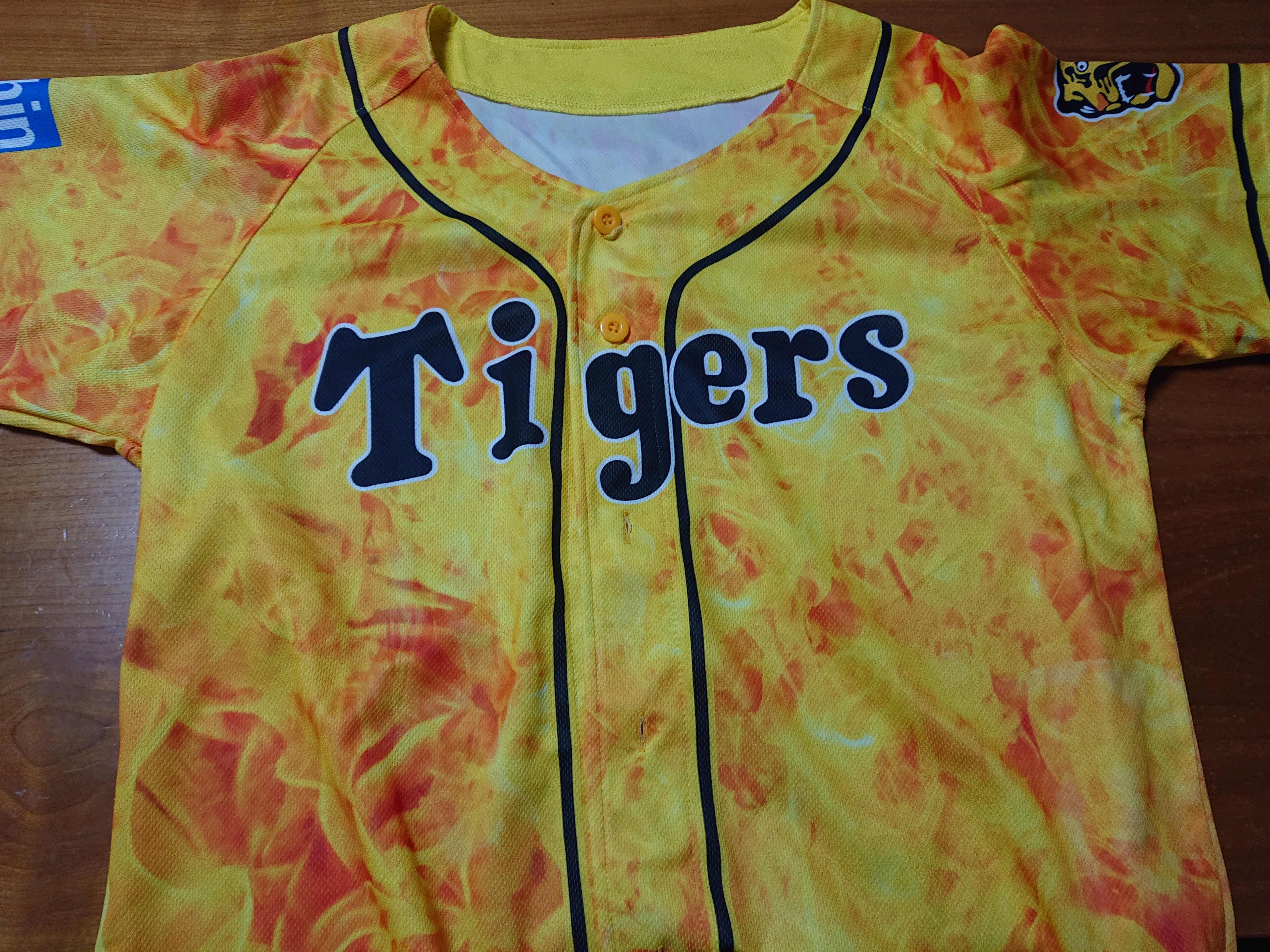 選手と同じデザインの黄色のウル虎ジャージを着て、応援だ📢