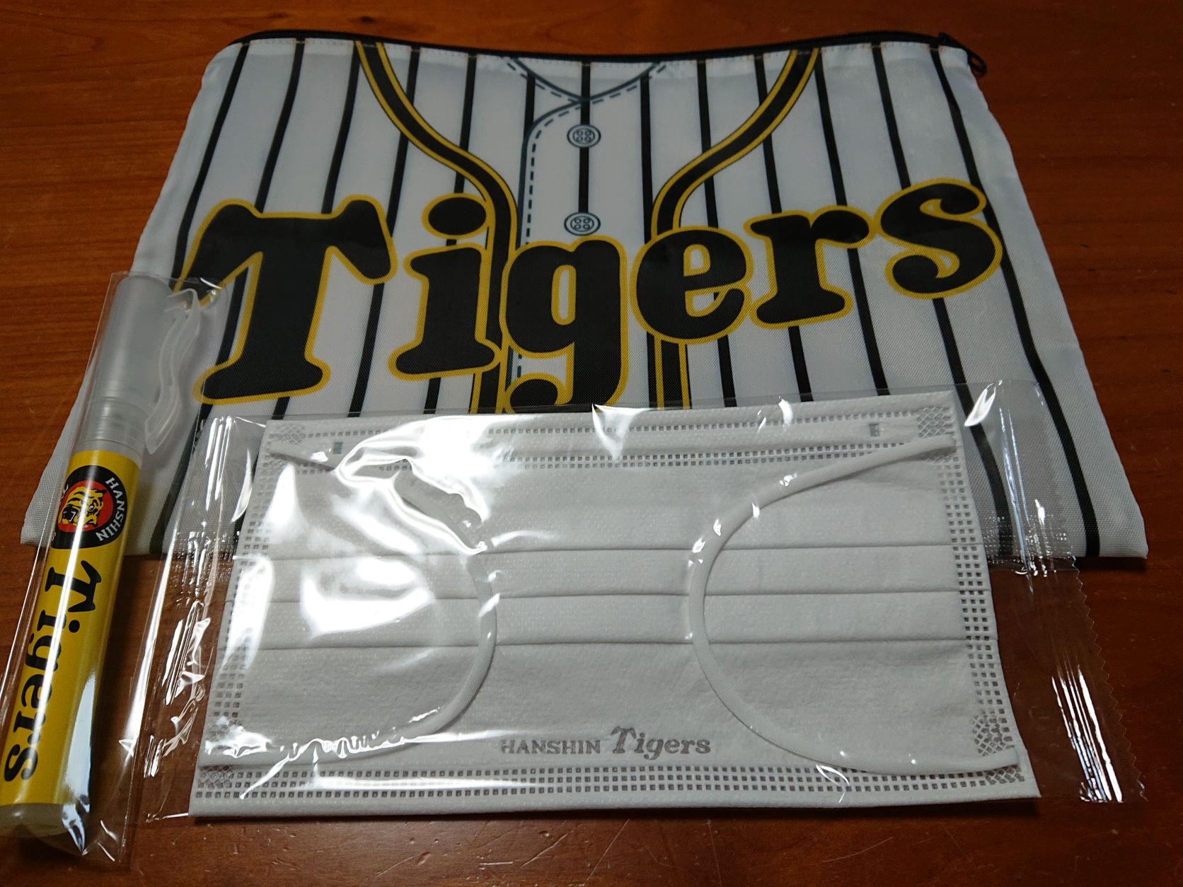 タイガースロゴマスク+アルコール消毒スプレー+ポーチのセット♪