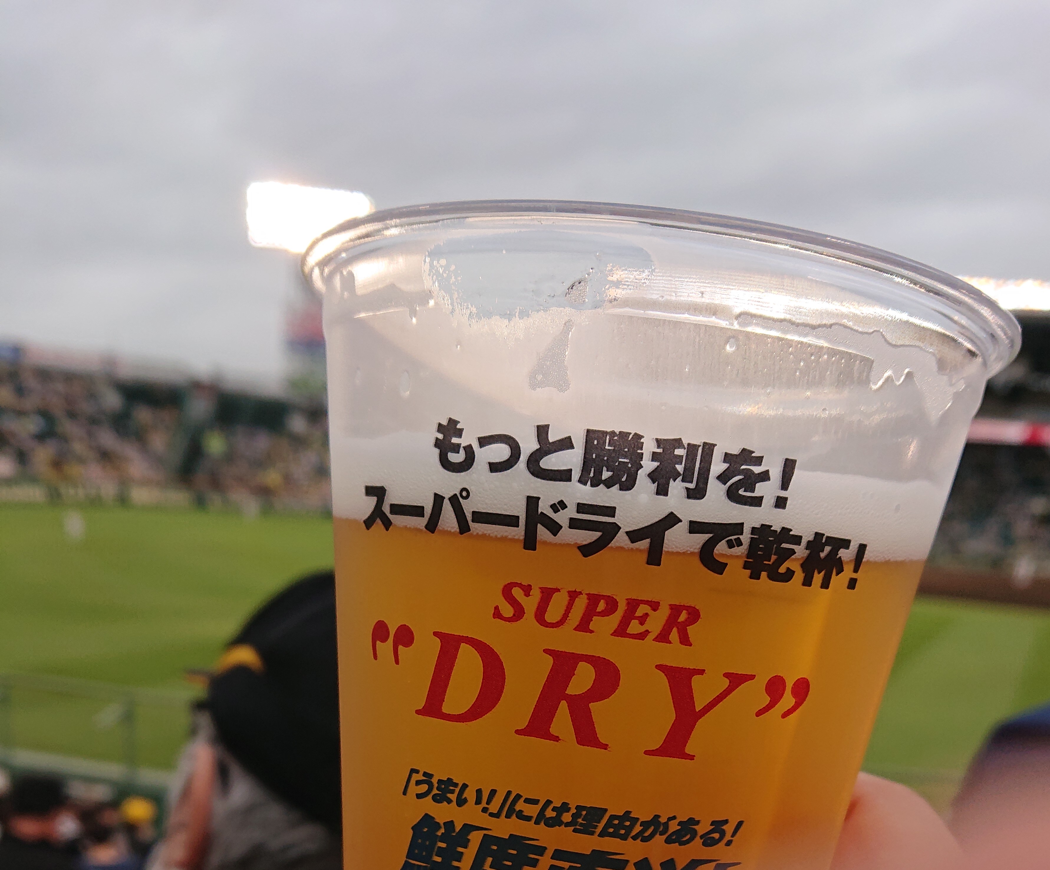 プレイボール直後、ビールを注文して、嬉しがって写真を撮っていると、