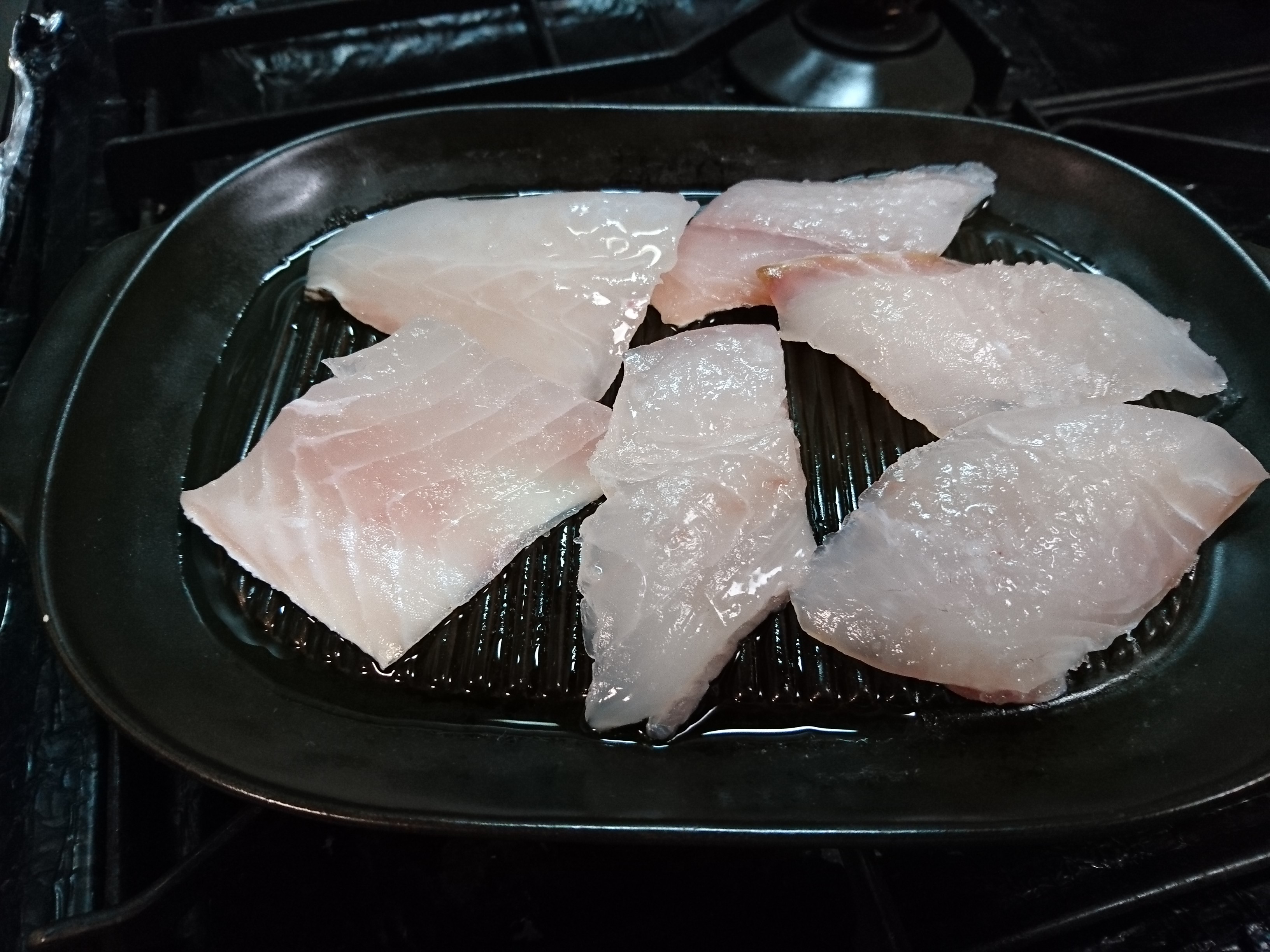 ①あらかじめ骨を取って、切り身にして、塩を振り、さっと皮目だけ焼くことにしました。
