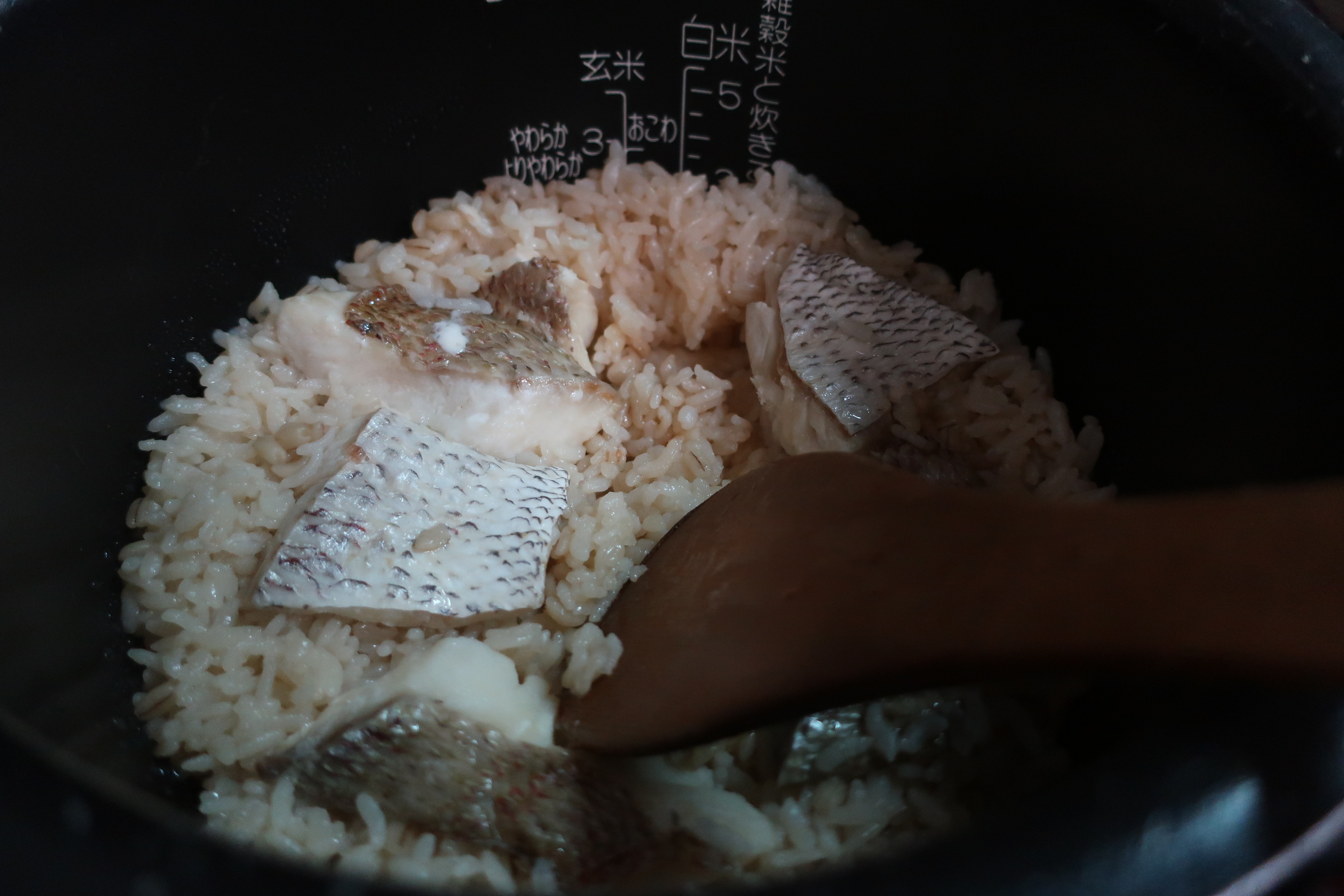でも、さっと皮目を焼いてから入れて炊き込むと、鯛の身が締まって美味しく出来上がりました。