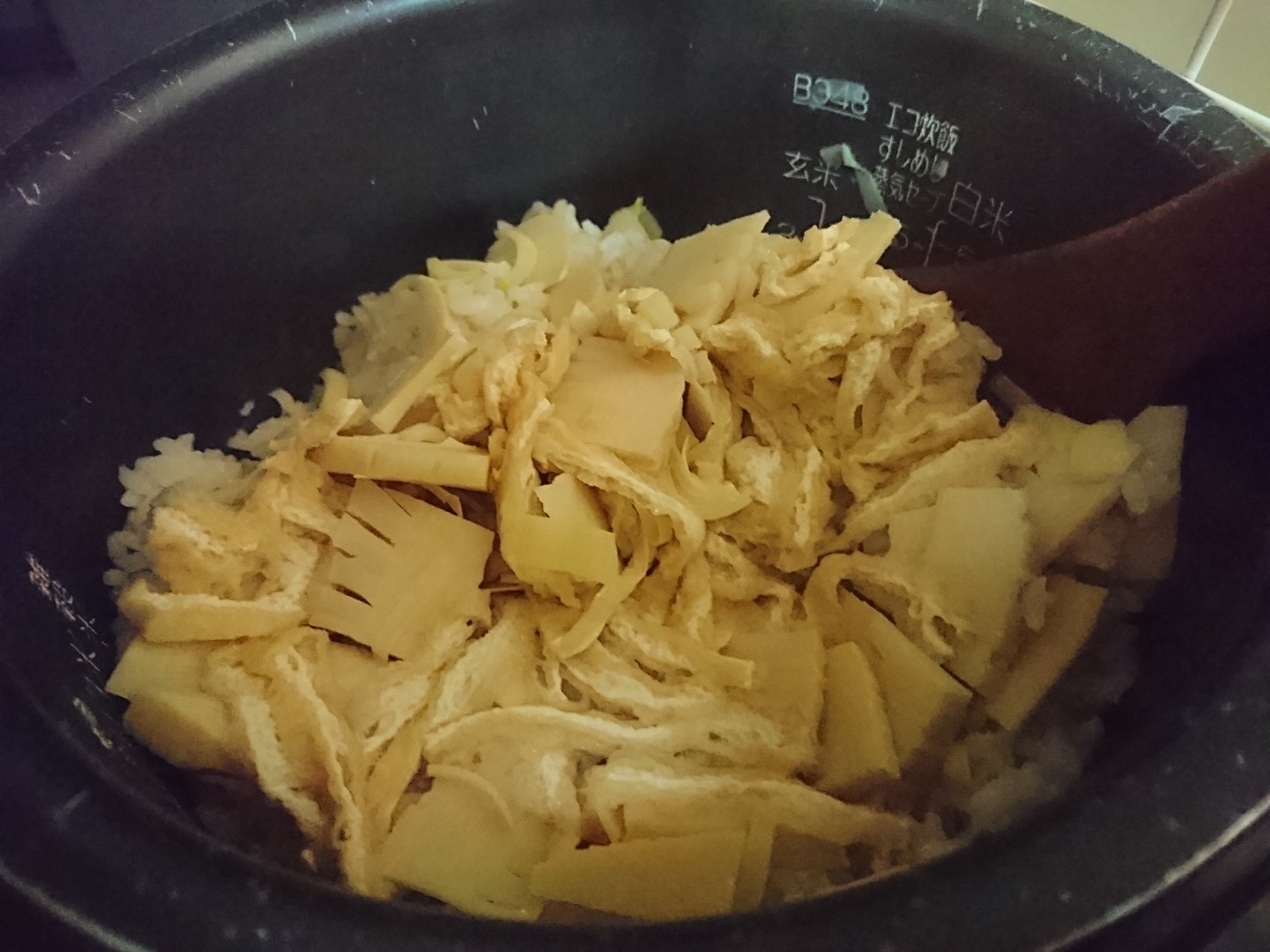 薄揚げもたけのこも、ほんのり色付いて食欲をそそります。