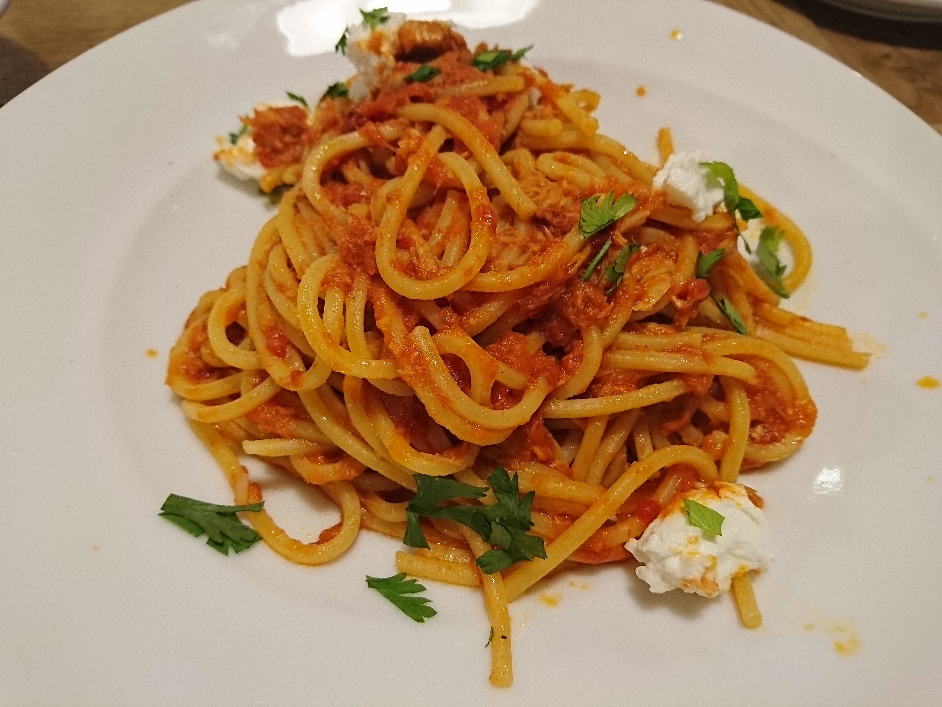 「カラブリア産ツナとンドゥイヤ マッケローニ アッラ キターラ」