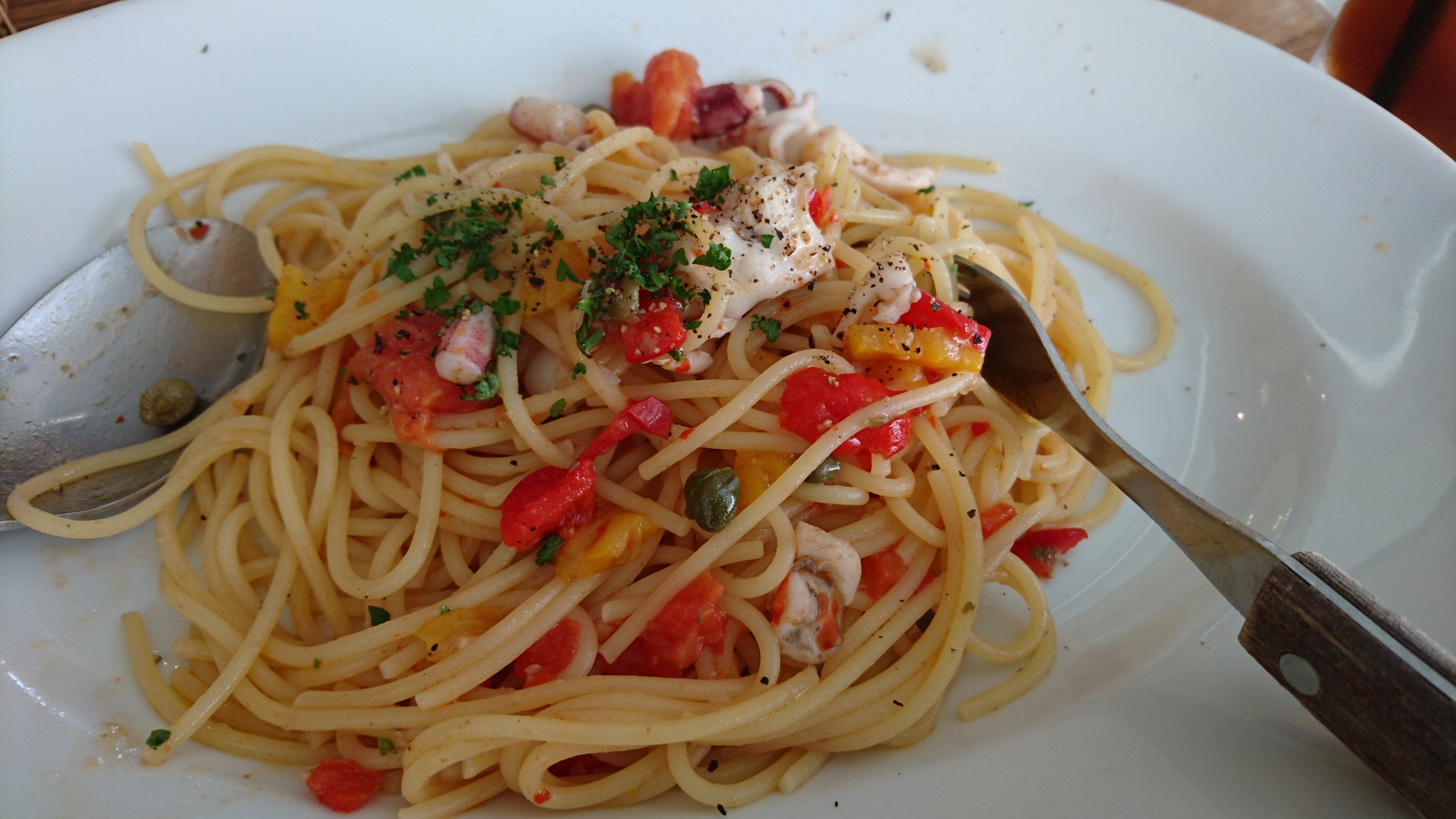 パスタは少し太めでしたが、アンチョビとタコがパスタにうまく絡んで、とても美味しかったです。