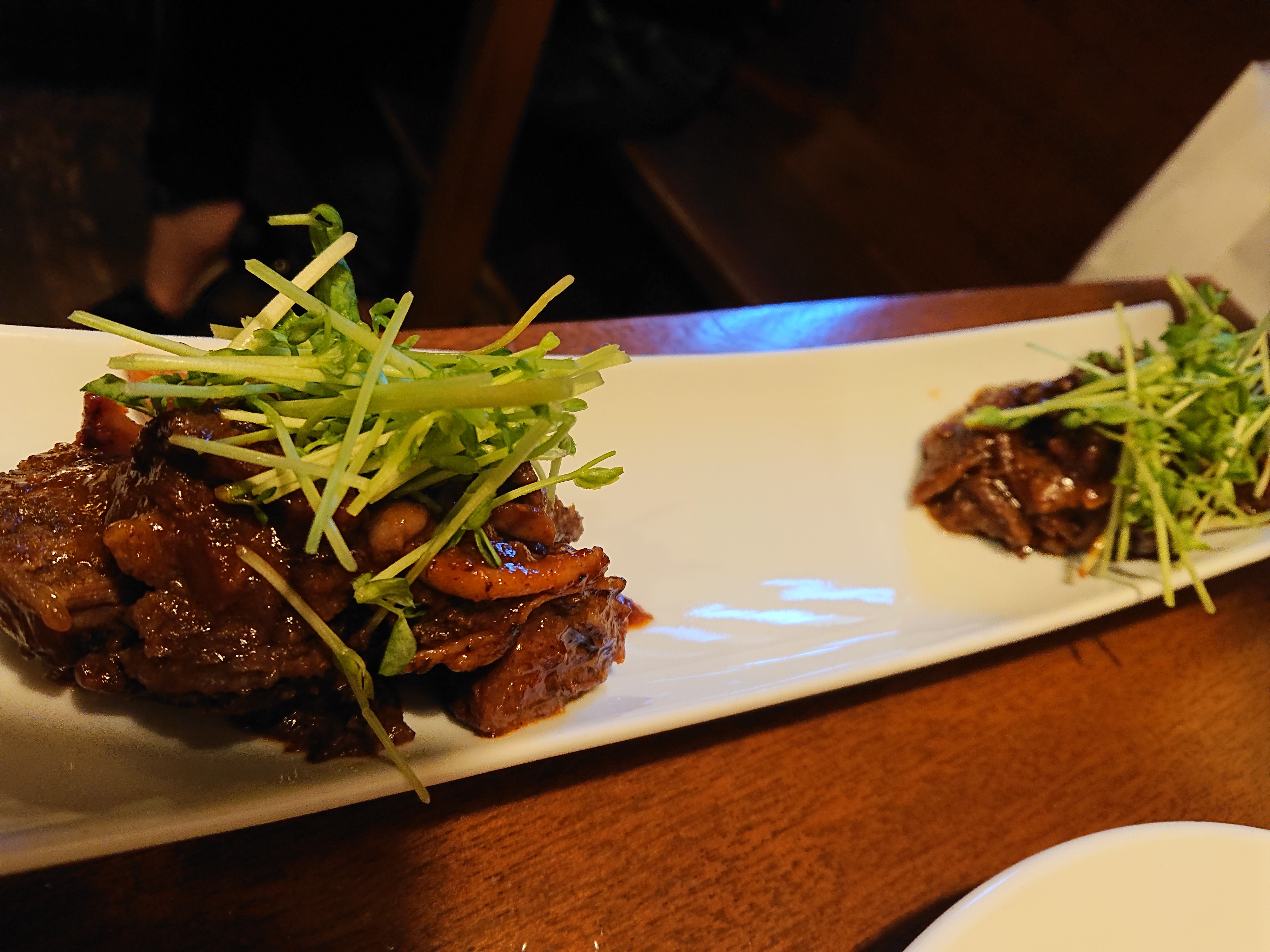 肉の甘みと赤ワインの酸味がうまくミックスされた料理です。