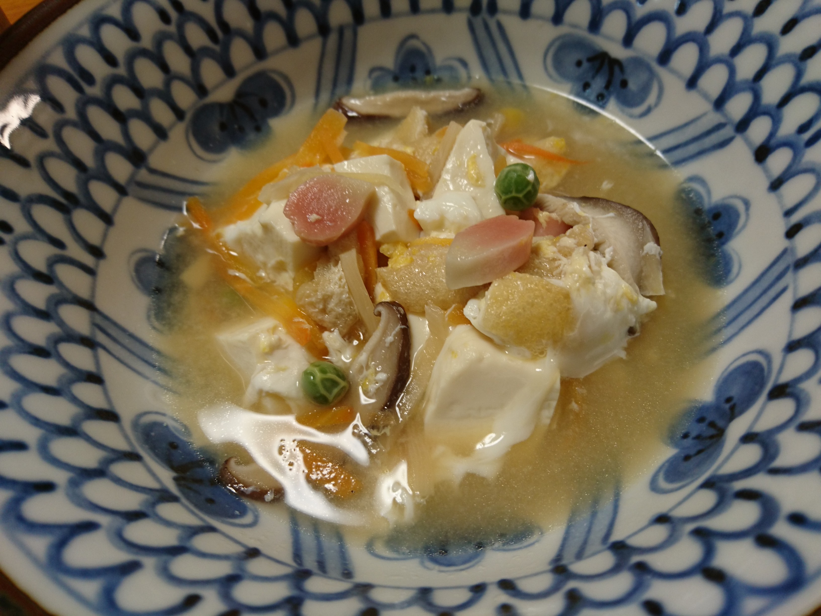 「半兵衛麩」の花びら麩と豆腐の卵とじ