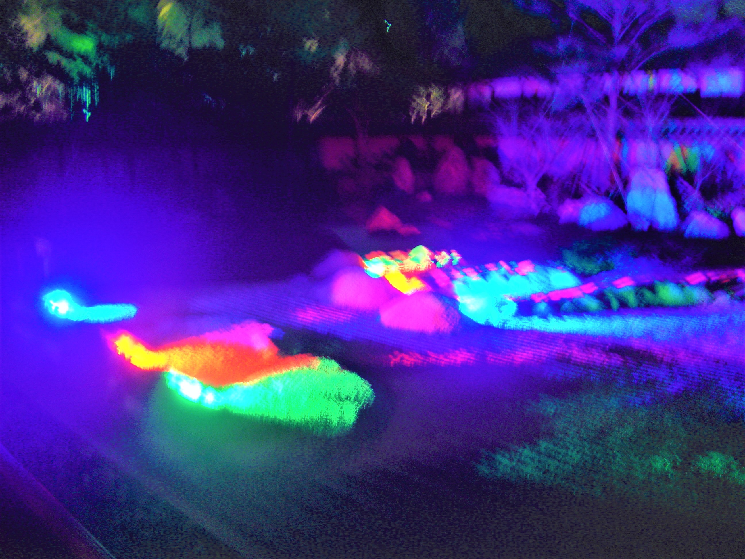 幻想的な青い光に包まれ、クスノキや竹林もライトアップ☄