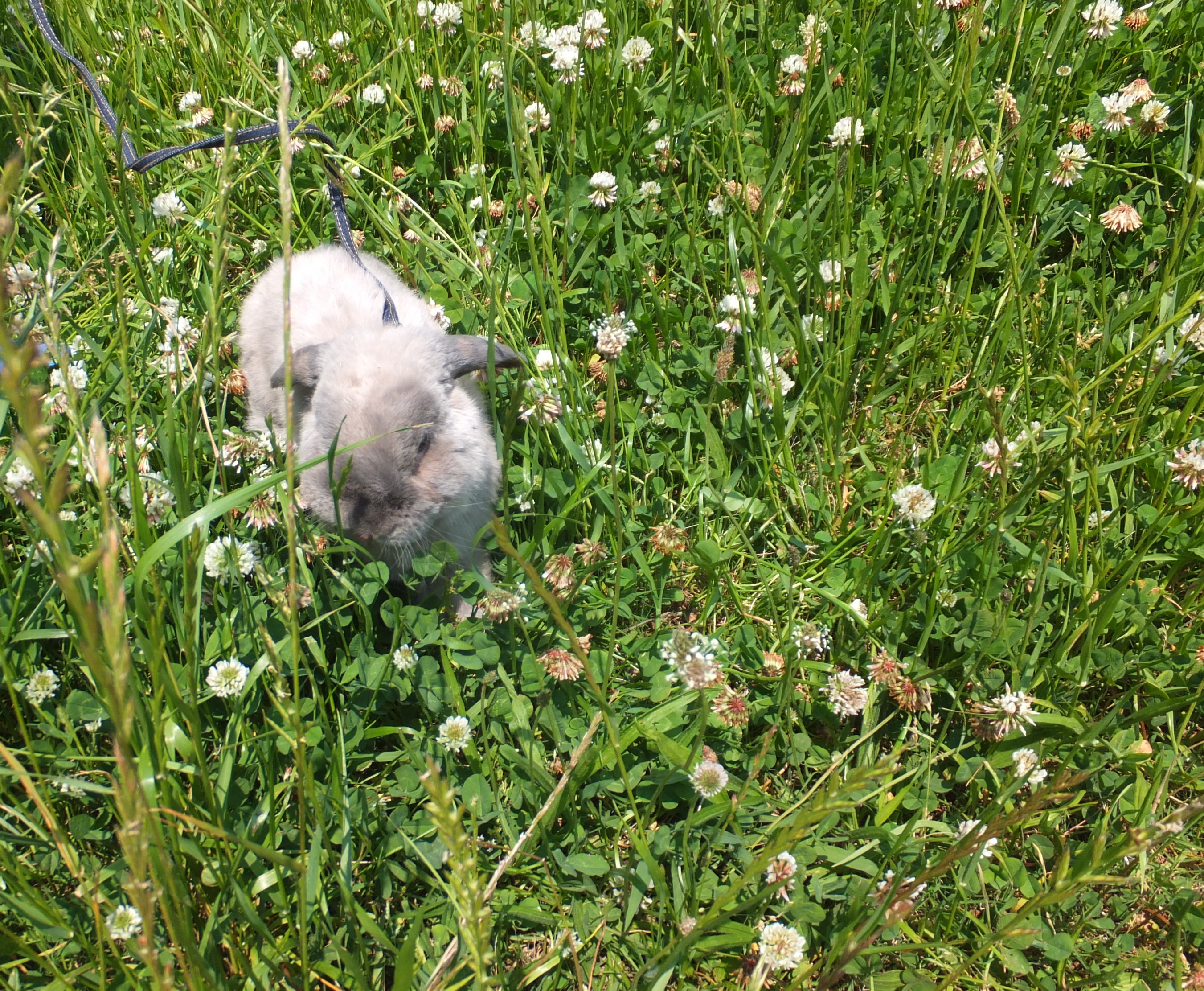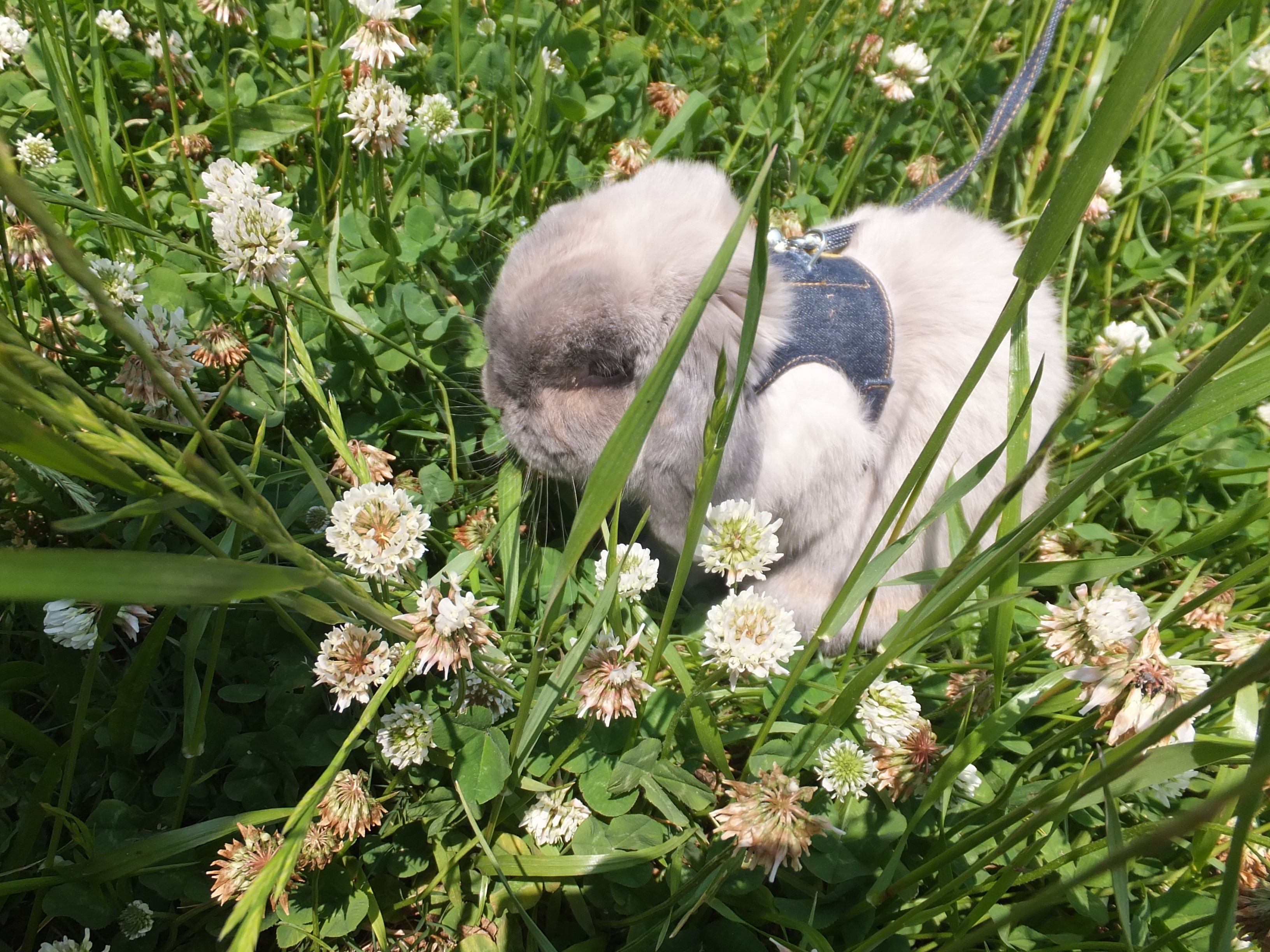 しろつめ草がたくさん咲いている草村の中が気に入ったみたい。