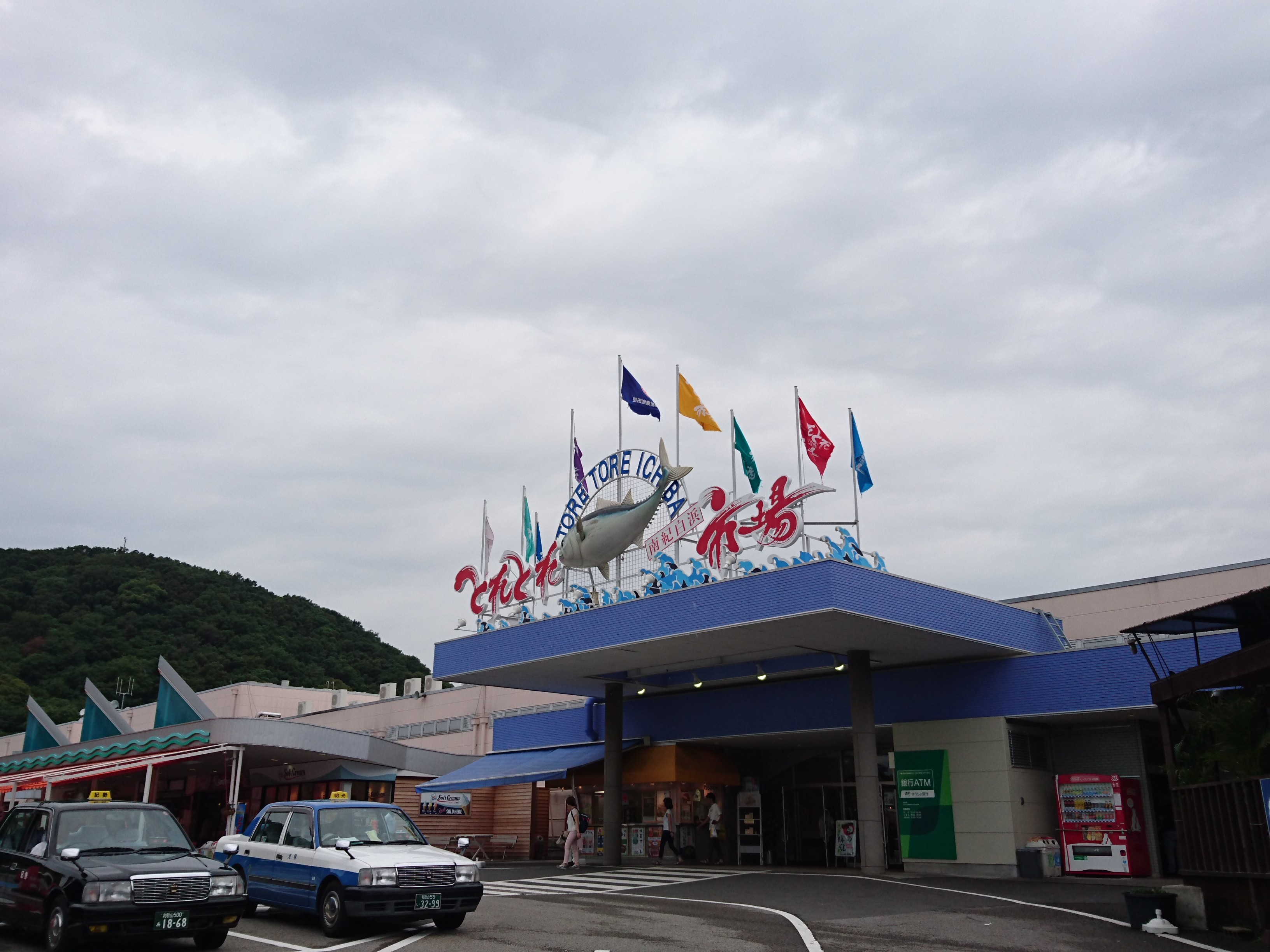 とれとれ市場では、屋根のあるオープンテラスでしばし時間を潰しました。