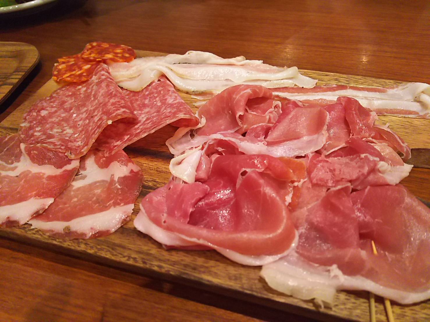 モモ、バラ、サラミなどいろんな部位のハムが少しずつ。