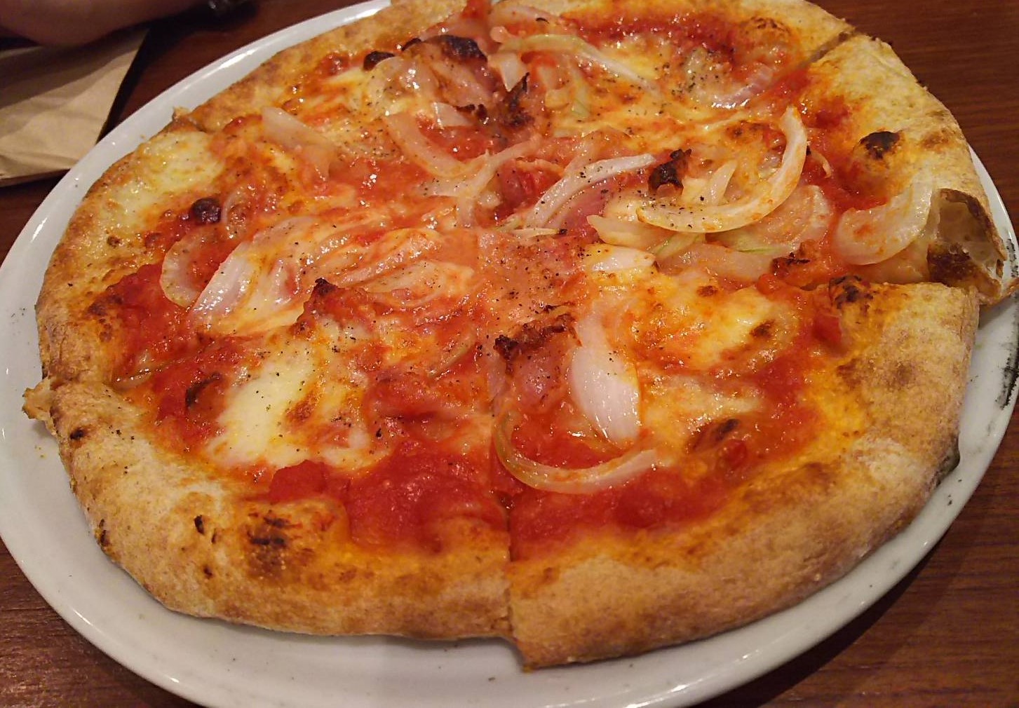 トマトソースのピッツァですが、玉ねぎの辛味と甘みが合わさって美味しかったです。