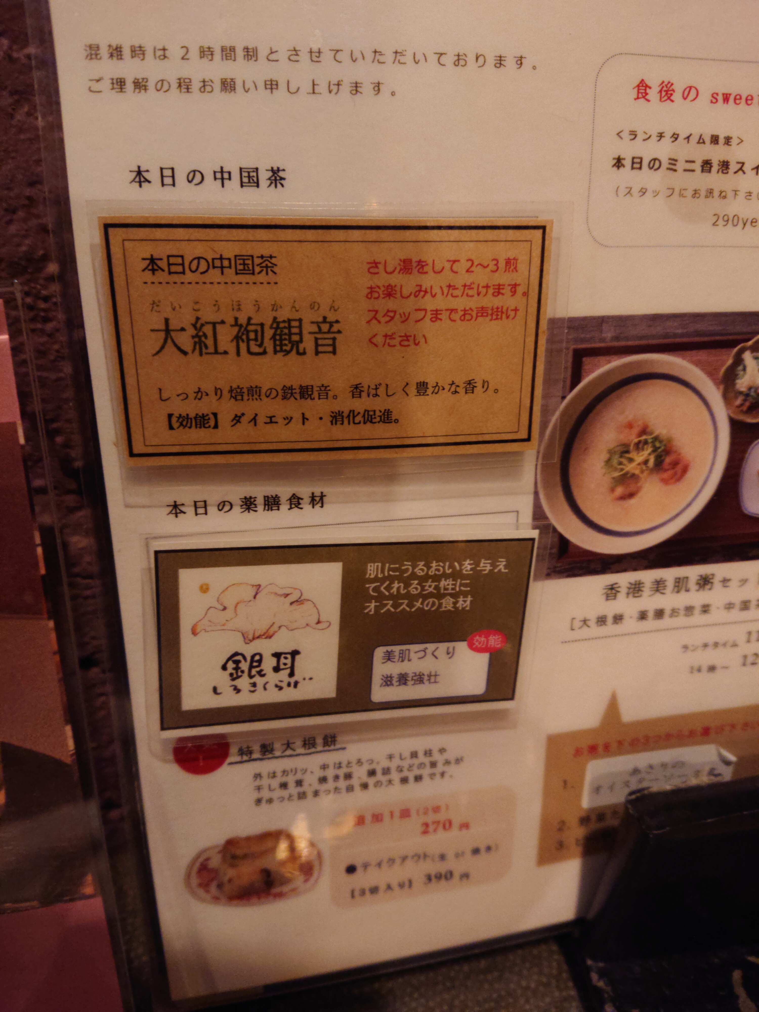 特製大根餅と薬膳お惣菜も付いています。