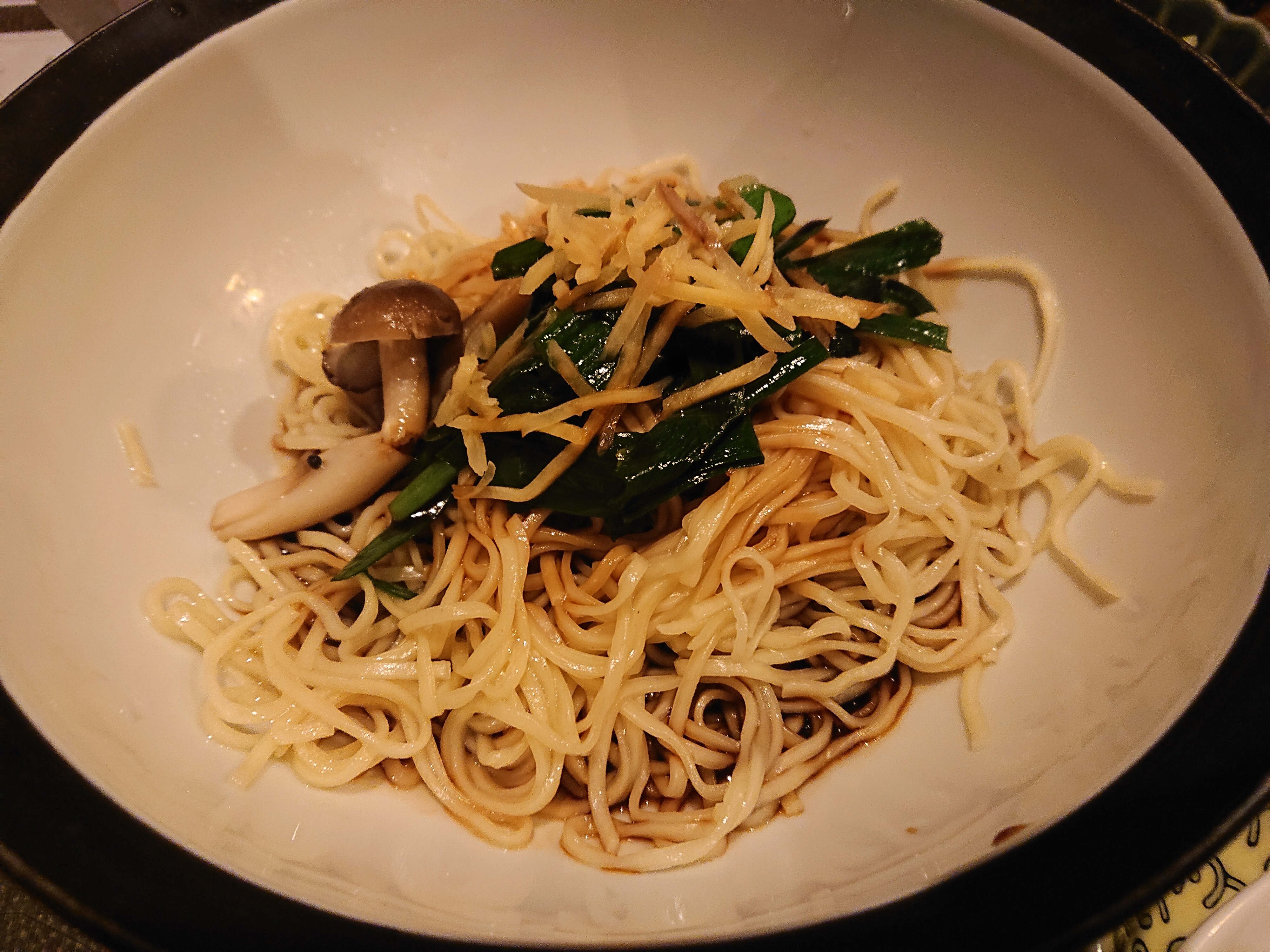 あえ麺も付いた「きのことニラのあえ麺+ミニ香港粥セット」にしました。