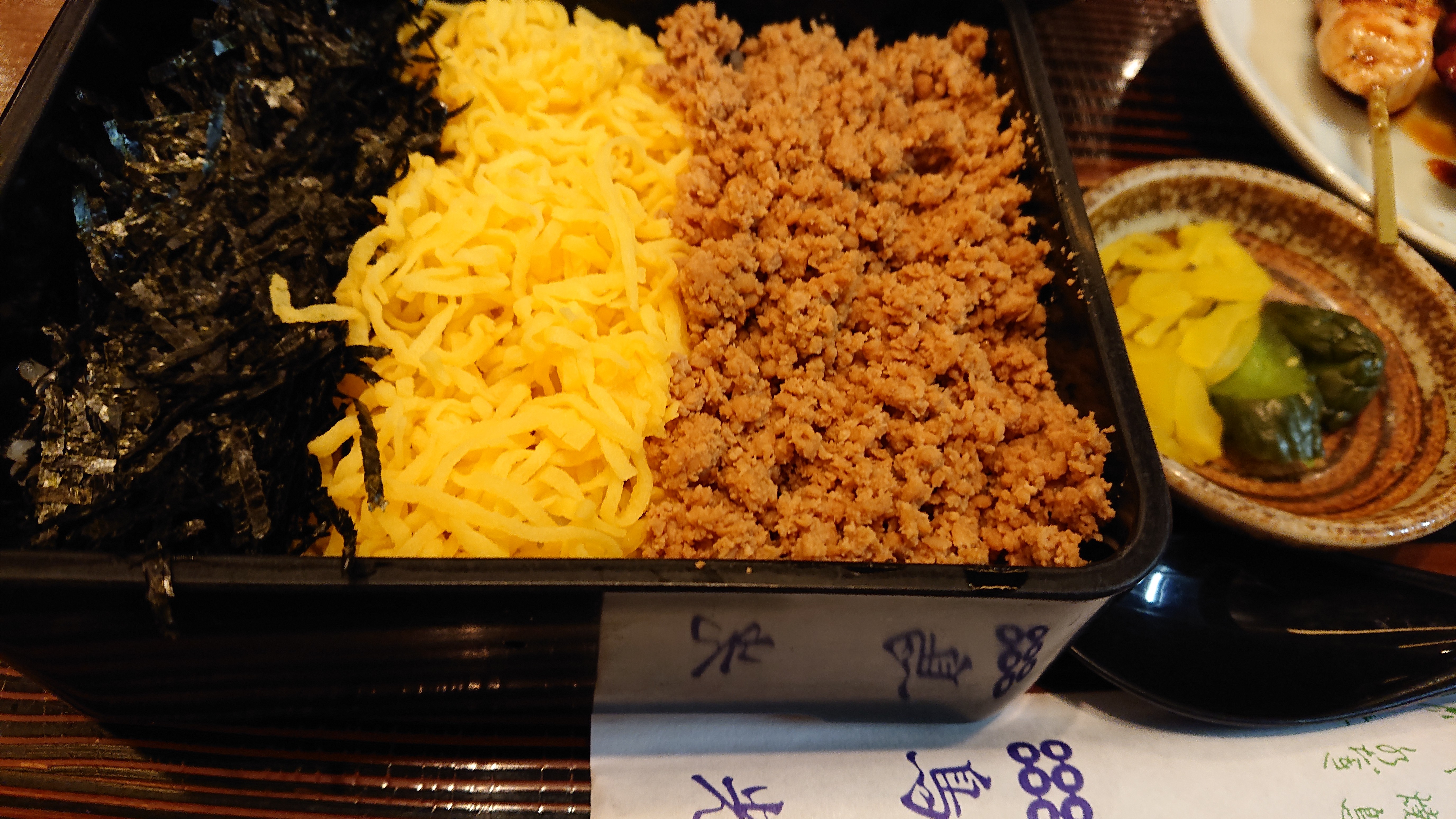 焼き鳥が3串付いているこちらの鳥そぼろ弁当にしました。