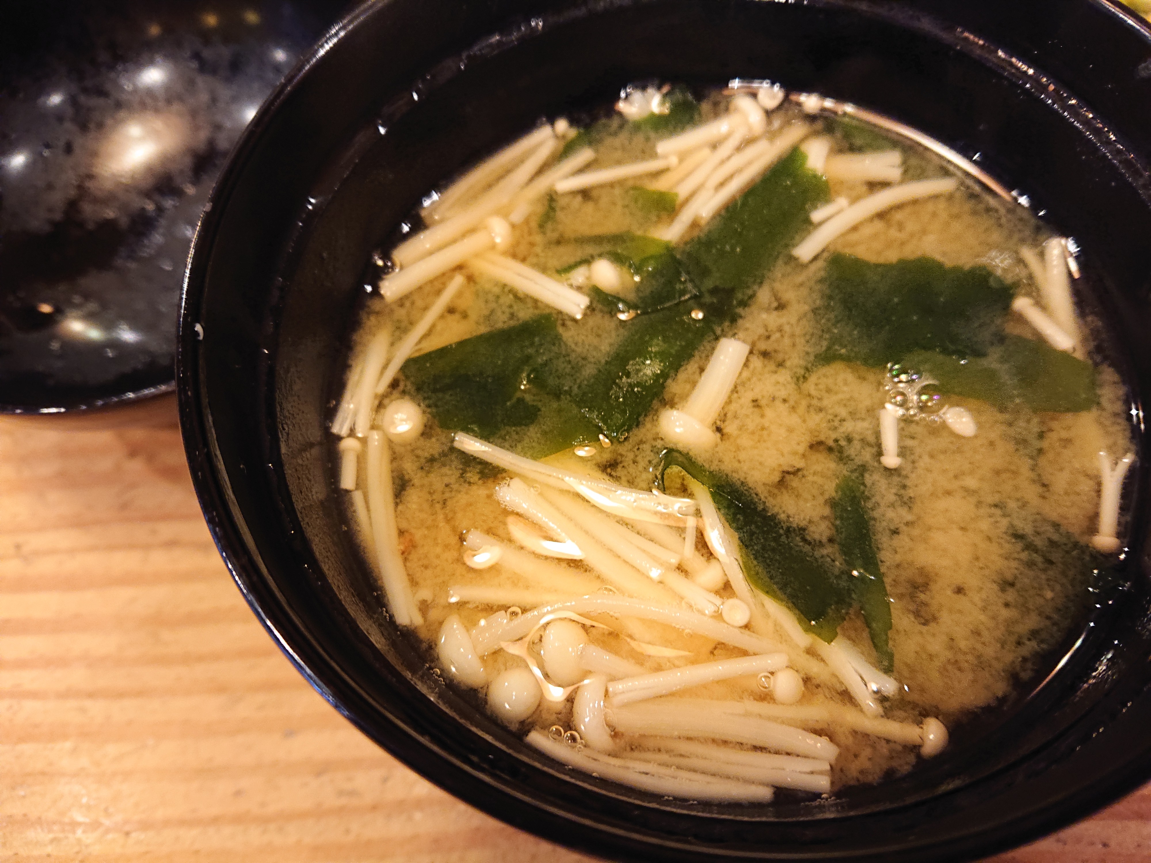 えのきとわかめが入ったお味噌汁が付いており、