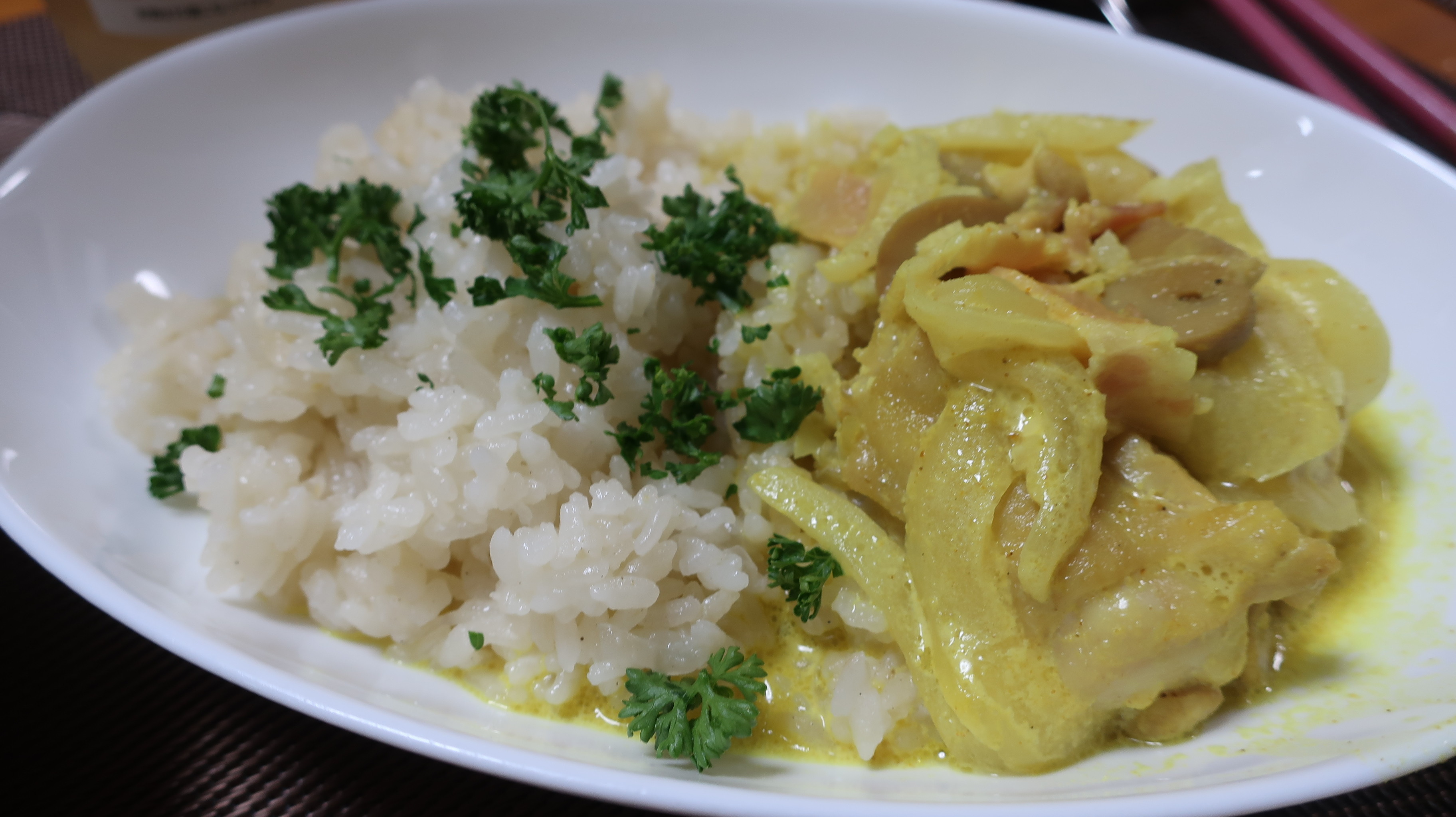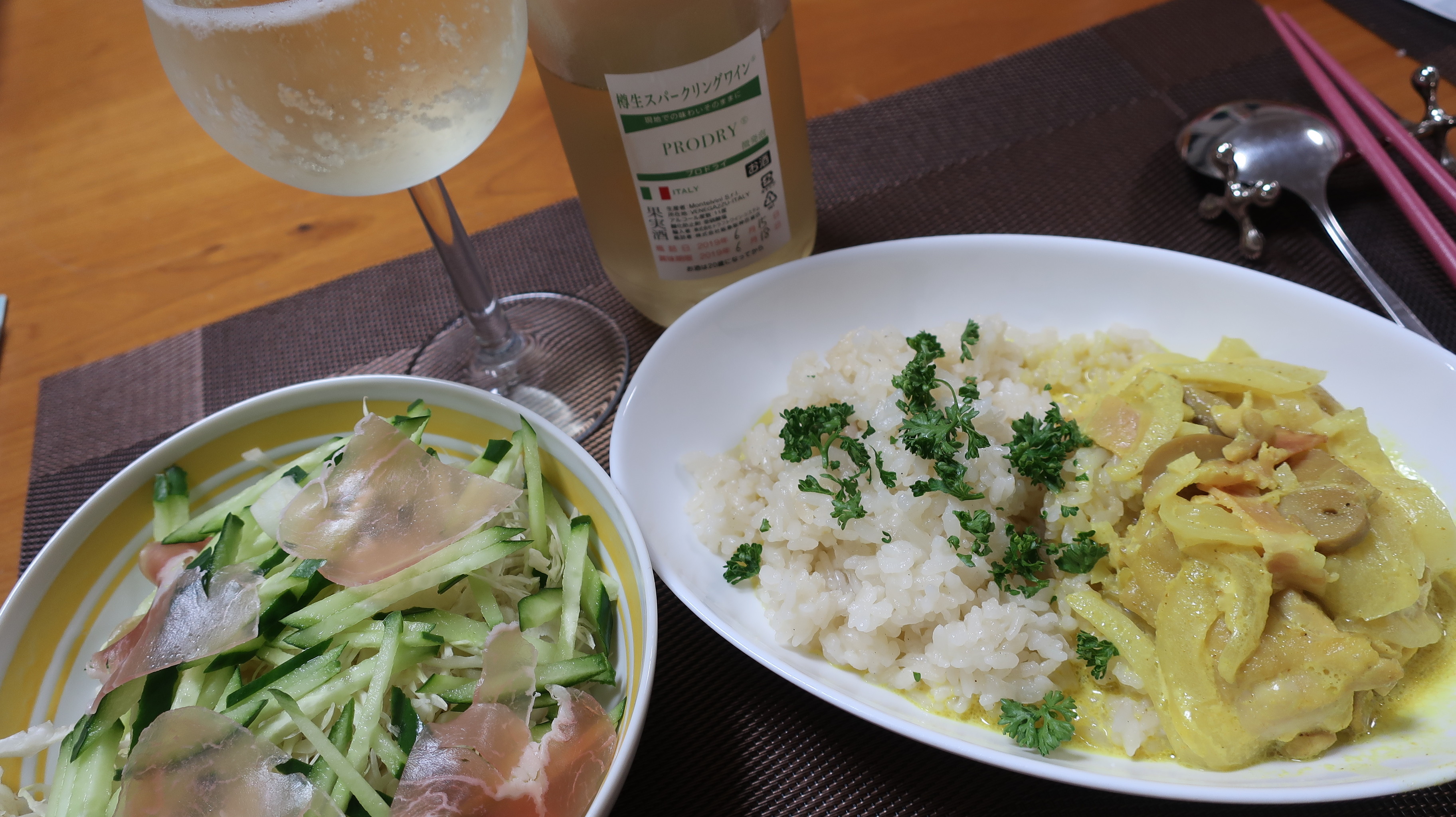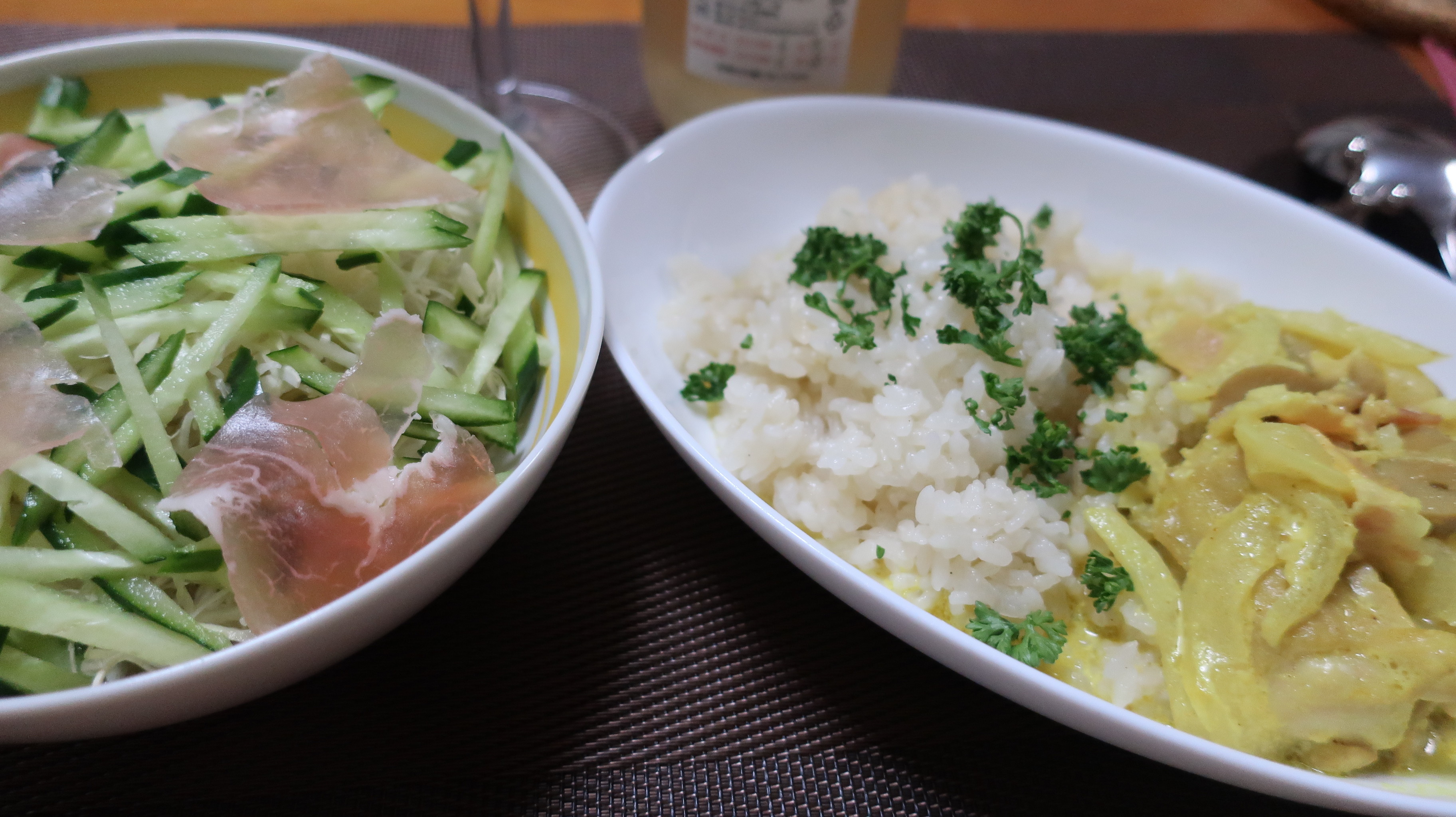 チキンとマッシュルームのクリーム煮(カレー風味)と生ハムサラダと。