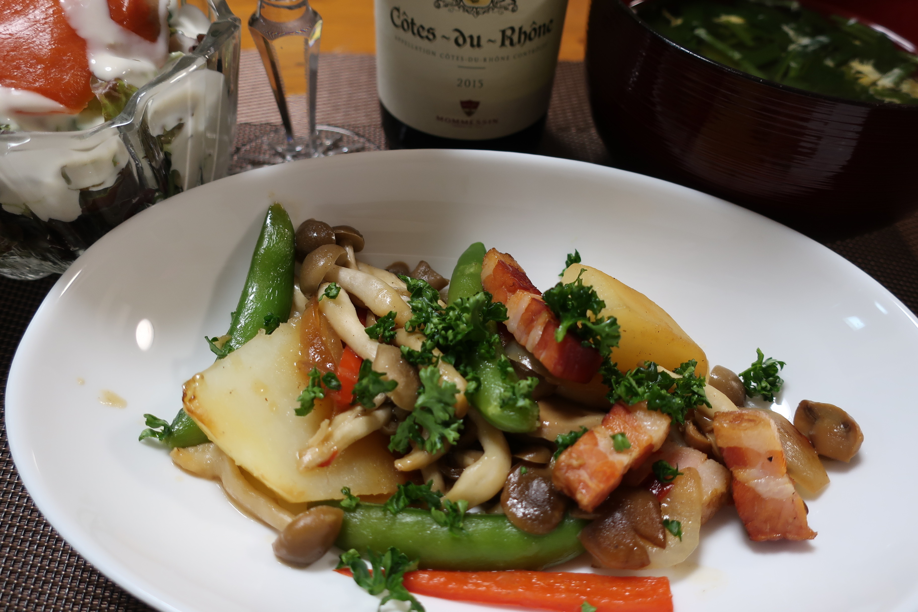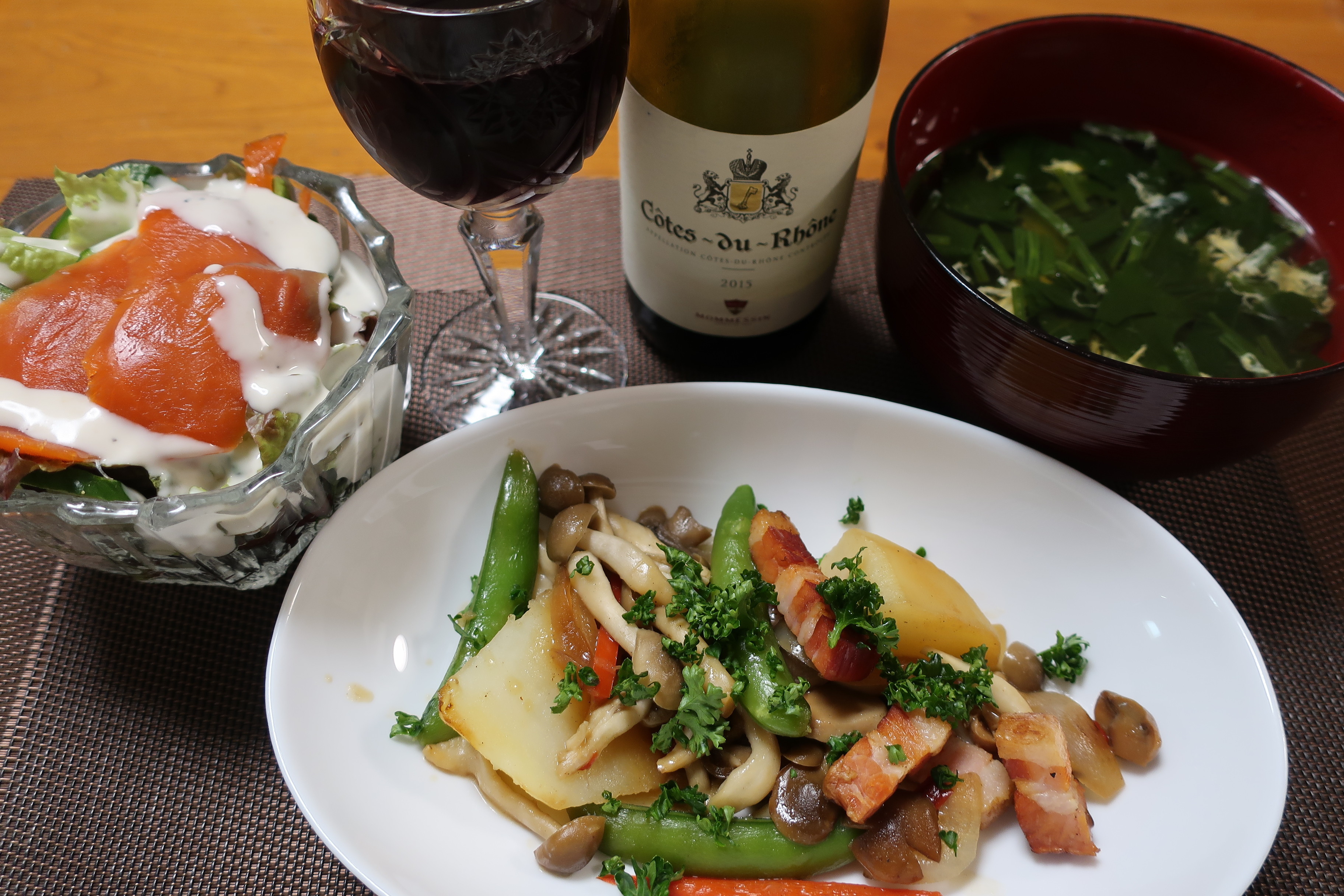 本当は白ワインを合わせたかったメニューですが、白を冷やしていなかったので(^-^;